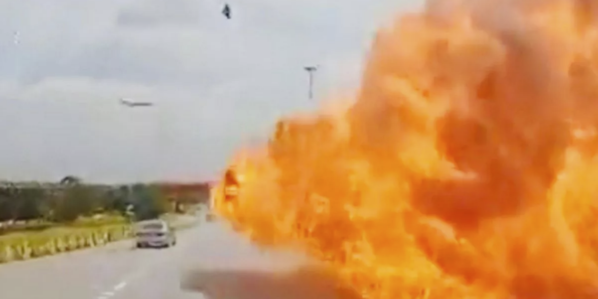 A surveillance camera showed the aircraft’s descent onto the roadway, accompanied by a powerful shockwave that shook the device even at a considerable distance.